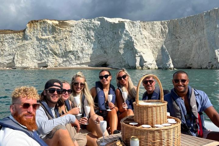 You’ll cruise along the Sussex coastline taking in the picturesque sights of the Seven Sisters Cliffs and iconic Beachy head lighthouse, Pack a picnic, take a refreshing swim from our dive platform, and set the mood with your favourite tunes on our stereo system. There’s simply no better vantage point to witness the Eastbourne Airshow than from the sea. An unforgettable experience awaits, and this is one opportunity you won’t want to miss!